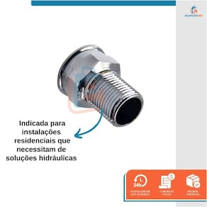 A bucha de aumento é ideal para uso residencial, com design em zamac com acabamento cromado, proporciona mais durabilidade e resistência ao produto tanto contra o tempo quanto clima. A bucha é indicada para instalações residenciais com ponto de água com rosca de 1/2” e que necessitam usar torneiras, equipamentos ou mangueiras com rosca de 3/4”.