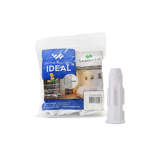 A Bucha Ideal é a mais indicada para a fixação de móveis e objetos; Graças a sua torção forma-se um rebite plástico interno nas paredes; Podem ser utilizadas em tijolos furados, assim como em paredes de gesso cartonado. Disponiveis nos tamanhos: 6mm, 8mm, 10mm.