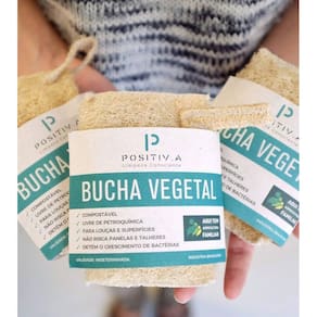 Bucha Vegetal Positiva Banho E Louça Artesanal Benefícios: Não risca panelas, talheres e inox em geral; Mais higiênica, pois detêm o crescimento de bactérias; Limpa louças e superfícies; Fortalece pequenos agricultores locais; Não gera resíduo, e pode ser descartada em composteira; É um fruto seco da trepadeira Luffa Cylindrica; O tempo médio de uso é de 2 meses. Modo e uso: Para higienizá-la, ferva uma vez por semana por 5 minutos. Para descartá-la, enxágue bem, corte em pedacinhos e coloque na composteira ou descarte com outros resíduos orgânicos. Composte somente se usada com lava louças e sabão biodegradáveis. Você sabia Esponjas sintéticas são feitas de poliuretano e proliferam fungos e bactérias. Demoram centenas de anos para se decompor e ainda deixam microplásticos no meio ambiente, podendo ser ingeridos por animais. COMPOSIÇÃO: Luffa Cyllindrica e linha de costura 100% algodão. MEDIDAS: Produto artesanal. Medidas podem variar. 4x12x9 Possui Selo agricultura familiar. Cor: Bege