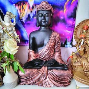 Buda Hindu Meditanto XG2 05510 Manxs, uma Estátua Extra Grande, sofisticada, colorida e que vai dar Vida à Sua Casa Estátua de Buda Hindu grande e requintada de 46cm na cor preta para destaque da roupa color, em resina de alta qualidade. Esta Estátua Buda Meditando é perfeita para alcançar a harmonia e o equilíbrio na decoração dos ambientes almejando transmitir tranquilidade e paz interior aos seus ocupantes. Trada-se de uma adição maravilhosa para sua casa. Tamanho em cm: 22 x 32 x 46 cm Dicas: - Se você é budista, provavelmente já tem um altar; apenas certifique-se de colocar este altar em sua casa onde a meditação e a reflexão possam ser praticadas de modo calmo e devidamente respeitoso. - Coloque esta estátua no nível dos olhos ou mais alto. - Evite colocá-lo próximo a tomadas elétricas ou equipamentos com peças móveis e motores. Este tipo de atividade perturba a energia ao redor. - Coloque na frente da porta de entrada, numa mesa alta, isso garante que o Buda interaja com a energia Chi, que entra na sua casa. A estátua vai neutralizar qualquer Chi negativo e transformá-lo em positivo. - Também pode colocar na sala de estar, em direção à porta da frente. - Colocar esta Estátua na mesa de estudos e trabalho é muito auspicioso, já que o Buda evoca Boas Energias para cumprir objetivos acadêmicos e projetos. - Colocar esta Estátua Buda na recepção do seu escritório traz muita prosperidade para os seus negócios. É um incrível e adorável presente, serve para decorar e harmonizar a energia da sua casa Venha Cuidar-se e Decorar Na Mana Om Você recebe seu Buda Chinês Menino Com Castiçal E Boas Energias Gratidão, Namastê, Tudo de Ohm