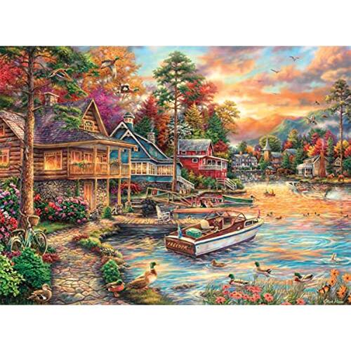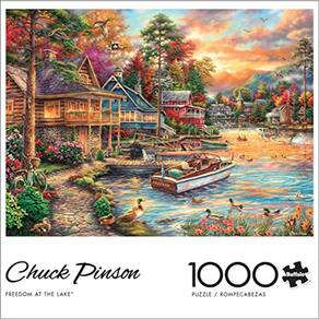 Freedom at the Lake é um quebra-cabeça de mil peças do artista Chuck Pinson. Alguns patos mallard nadam até um barco estacionado ao longo de uma fileira de casas do lago. As árvores começam a mudar de cor à medida que o outono se aproxima. Esta pequena comunidade à beira do lago parece o lugar perfeito para se aconchegar para o inverno. Todos os quebra-cabeças da Buffalo Games são fabricados a partir de placas de quebra-cabeça recicladas. Uma técnica de corte de precisão garante que cada peça se encaixará profundamente com a assi da empresa Perfect Snap. Um pôster de quebra-cabeça bônus também está incluído para que você tenha uma referência útil de como o quebra-cabeça completo deve ser enquanto você coloca o seu juntos.