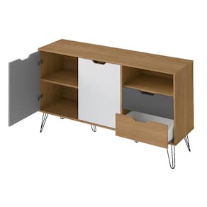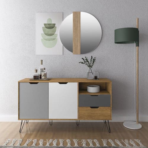 Seja como bancada para acomodar bebidas e objetos decorativos ou para guardar louças e talheres, o buffet Estocolmo veio para conquistar o seu lar! Com todo o espaço que ele oferece, entre gavetas, prateleiras e nicho, você terá o necessário para decorar e organizar seus utensílios, da melhor maneira possível. Além é claro, do visual maravilhoso, que vai deixar sua sala muito mais bonita e atual!