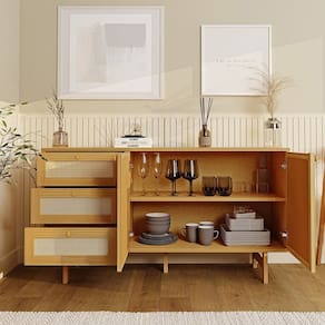 O Balcão Magna com 2 portas e 3 gavetas é a união perfeita entre versatilidade e sofisticação. Com estrutura em madeira maciça de pinus e acabamento em verniz de alta qualidade, essa peça valoriza o desenho natural da madeira, trazendo aconchego e estilo para o ambiente. As portas podem ser em rattan, para um toque natural, ou laqueadas em verde, criando uma opção mais contemporânea e vibrante. As gavetas oferecem amplo espaço para organização, enquanto os puxadores em madeira maciça complementam o design com elegância. Seja qual for sua escolha de acabamento, o Balcão Magna transforma seu espaço com praticidade e bom gosto, adaptando-se a diferentes estilos de decoração. Acabamento da Gaveta: Verniz Acabamento da Porta: Verniz Acabamento da Prateleira: Pintura UV Acabamento dos Pés: Verniz Altura dos Pés: 18 cm Ambiente Principal: Sala de Jantar Complexidade da Montagem: Média: pode ser montado por mais de uma pessoa e/ou necessite de maior conhecimento para montagem Cor: Mel Cor do Produto: Mel Cor Interna: Mel Escala de Brilho: Semi-Fosco Escala de Brilho da Gaveta: Semi-Fosco Escala de Brilho da Porta: Semi-Fosco Escala de Brilho da Prateleira: Semi-Fosco Gaveta com Chave: Não Itens Inclusos: 01 Buffet, manual de montagem e kit ferragens Linha ou Coleção: Magna Manual de Montagem e Instalação: https://product-hub-prd.madeiramadeira.com.br/959493/documents/80de2bca-a522-4482-a19c-5100fd7097352511329532217302084944232.pdf Marca: CabeCasa MadeiraMadeira Material da Gaveta: Madeira Maciça Material da Porta: Madeira Maciça Material da Prateleira: Madeira Maciça Material do Puxador da Gaveta: Madeira Maciça Material do Puxador da Porta: Madeira Maciça Material dos Pés: Madeira Maciça Material Principal: Madeira Maciça Necessita Montagem: Sim Origem do Produto: Nacional Pés Reguláveis: Não Peso: 32,7 kg Peso Máximo por Gaveta: 5 kg Peso Máximo por Prateleira: 10 kg Possui Adega: Não Possui Espelho: Não Possui Nicho: Não Possui Pés: 04 Possui Portas: 02 Possui Rodízio: Não Recomendações de Uso, Manutenção e Limpeza: A limpeza deve ser feita com pano levemente umedecido, não utilizar produtos químicos ou abrasivos. Sapatas Niveladoras: Não Sistema de Montagem: Cavilhas e parafusos Suporta Até (kg): 30 kg Tipo de Corrediça da Gaveta: Metálica Telescópica Tipo de Dobradiça/Corrediça da Porta: Metálica Tipo de Madeira Maciça: Pinus Tipo de Madeira Maciça da Gaveta: Pinus Tipo de Madeira Maciça da Porta: Pinus Tipo de Madeira Maciça da Prateleira: Pinus Tipo de Madeira Maciça dos Pés: Pinus Tipo de Porta: Bater Tipo de Puxador da Gaveta: Externo Tipo de Puxador da Porta: Externo
