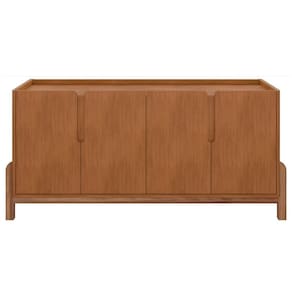 Feito em MDP/MDF. Possui 4 portas em MDF usinados com detalhes curvos e 2 prateleiras.