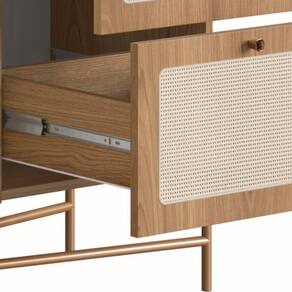 Balcão Buffet 28935, Linha Oslo Artesano. Traz como característica um traço artesanal, suave e acolhedor. Possui estrutura em MDP de 15mm, acabamento em pintura BP na cor Hanover (Fosco), e Pés de tubo metálico em aço com pintura epóxi na cor dourada, costas em HDF 3mm BP na cor branco. Composto por 03 portas com dobradiças metálicas com proteção anticorrosão, 02 gavetas com corrediças telescópicas garantindo um abre e fecha leve e suave, puxadores de poliestireno na cor Dourado, aplique de tela sintética (PVC com poliéster), fixada na parte externa das portas e gavetas, as extremidades dos pés possuem ponteiras plásticas para evitar atrito do móvel com o piso, afim de evitar acidentes, móvel com design escandinavo minimalista, é a opção ideal para um ambiente com toque sofisticado e ao mesmo tempo aconchegante. Mais produtos da Linha Oslo, você encontra em nosso site, podendo fazer a composição completa para sua casa, são diversos itens com design prático e funcional para tornar a vida mais facil e a casa mais alegre. Este móvel chegará em sua casa separado em 02 volumes.