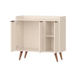 Contém uma prateleira interno e um amplo espaço para organizar elementos diários de diversos tamanhos, conta também com um tampo espaçoso que pode ser utilizado apra acomodar os objetos decorativos.