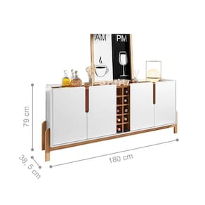 Possui pés em madeira maciça, e adega com nichos para até 10 garrafas.