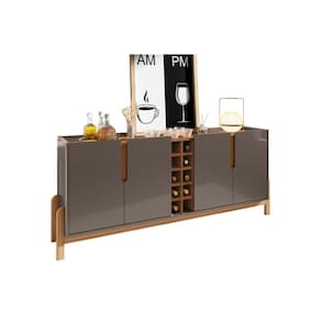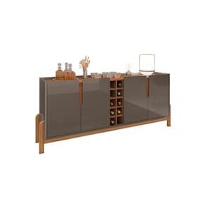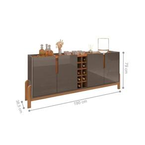 Possui pés em madeira maciça, e adega com nichos para até 10 garrafas.