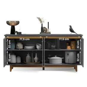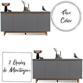 Aparador Buffet Sala Flow Com 4 portas Pés Madeira Maciça