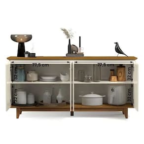 Aparador Buffet Sala Flow Com 4 portas Pés Madeira Maciça