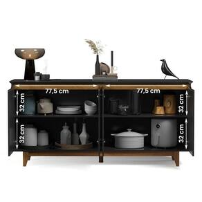 Aparador Buffet Sala Flow Com 4 portas Pés Madeira Maciça