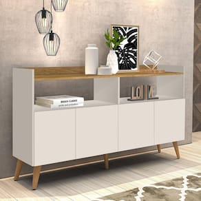 Apresentamos pra você o Buffet Master 4 Pts. Desenvolvido para quem procura produtos de qualidade com acabamento diferenciado no estilo retrô. Conta com 4 portas e 2 nicho de amplo espaço, visando organização e charme para o seu ambiente. Acabamento da Porta: Pintura UV Acabamento da Prateleira: Pintura UV Ambiente Principal: Sala de Jantar Complexidade da Montagem: Alta: deve ser montado por um montador especializado Cor: Off White/Marrom Cor do Produto: Off White/Marrom Escala de Brilho: Fosco Escala de Brilho da Porta: Fosco Escala de Brilho da Prateleira: Fosco Itens Inclusos: 1 Buffet, Manual de Montagem e Kit Ferragens Manual de Montagem e Instalação: https://cdn2.madeiramadeira.com.br/atributo/j-a-moveis/1382136-buffet-master-4-portas.pdf Material da Porta: MDP Material da Prateleira: MDP Material dos Pés: Madeira Maciça Material Principal: MDP Necessita Montagem: Sim Origem do Produto: Nacional Peso: 24,8 kg Peso Máximo por Prateleira: 7 kg Possui Adega: Não Possui Espelho: Não Possui Nicho: 02 Possui Pés: 04 Possui Portas: 04 Possui Rodízio: Não Recomendações de Uso, Manutenção e Limpeza: Limpar com pano seco, manter em lugar livre de umidade, ao abrigo de exposição direta ao sol. Sapatas Niveladoras: Não Sistema de Montagem: Parafusos, tampas, pregos Suporta Até (kg): 30 kg Tipo de Dobradiça/Corrediça da Porta: Metálica Tipo de Madeira Maciça dos Pés: Pinus Tipo de Porta: Bater Tipo de Puxador da Porta: Não Possui - Abertura por Fecho Toque undefined: 856159