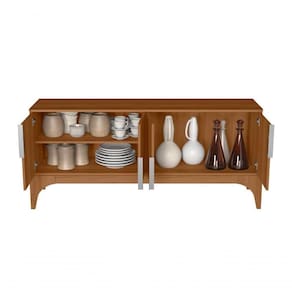Este buffet em Jequitiba é uma peça clássica que traz sofisticação e praticidade, com quatro portas que oferecem amplo espaço para organização.