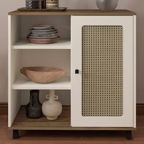 Buffet 1 Porta Sala de Jantar 80 cm 4 ARLY: Organização e Elegância em um Só Móvel! Este móvel possui três nichos funcionais com espaço otimizado para armazenar utensílios ou exibir decorações com praticidade. Sua porta com impressão em palha traz o detalhe sofisticado e requinte ao ambiente. Seu design versátil é ideal para salas de jantar, cozinhas e diversos espaços, combinando estilo e funcionalidade. Este móvel chegará em sua casa separada em 01 volume.
