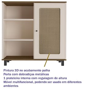 Características adicionais: Pintura 3D no acabamento palha; 1 Porta com dobradiças metálicas; Pés em MDF 25mm; Pintura UV com acabamento fosco