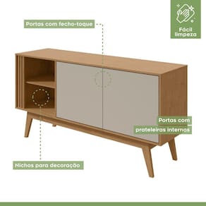 Perfeito para trazer a organização que falta na sua sala de jantar ou estar, o Buffet Aldo é também um complemento e tanto para o lar-style. Com destaque para o espaço interno, que acomoda louças, copos e utensílios para auxiliar naqueles momentos de confraternização, o tampo também é um grande aliado, pois apoia desde itens decorativos até bandejas com as melhores receitas para aquelas refeições em família. Para coroar a funcionalidade da peça, o bom gosto do combo de caixaria robusta pés. Com nuances modernas e elegância que conquista muitos elogios, esse móvel é uma adição impecável para o seu ambiente. Acabamento da Porta: Pintura Acabamento da Prateleira: Pintura Acabamento dos Pés: Pintura Altura dos Pés: 27 Ambiente Principal: Sala de Jantar Complexidade da Montagem: Média: pode ser montado por mais de uma pessoa e/ou necessite de maior conhecimento para montagem Cor: Amêndoa Clean/Off White Cor do Produto: Amêndoa Clean/Off White Escala de Brilho: Fosco Escala de Brilho da Porta: Fosco Escala de Brilho da Prateleira: Fosco Informações Complementares: Detalhes Ripados Itens Inclusos: 1 Buffet, Kit Ferragens e Manual de Montagem. Manual de Especificação Técnica: https://product-hub-prd.madeiramadeira.com.br/820605/documents/af2fbd43-3d4c-4a5f-b61a-c0b428b72904manualdemontagembuffetaldo.pdf Manual de Montagem e Instalação: https://product-hub-prd.madeiramadeira.com.br/820605/documents/bd3e86d0-14a9-4010-b18c-b4c762cf42dfmanualdemontagembuffetaldo.pdf Material da Porta: MDP Material da Prateleira: MDP Material dos Pés: MDF Material Principal: MDF/MDP Necessita Montagem: Sim Origem do Produto: Nacional Pés Reguláveis: Não Peso: 39.63 Peso Máximo por Prateleira: 5 Possui Adega: Não Possui Espelho: Não Possui Nicho: 02 Possui Pés: 04 Possui Portas: 02 Possui Rodízio: Não Recomendações de Uso, Manutenção e Limpeza: Limpar com pano macio e levemente umedecido. Não utilizar solventes a base e de inflamáveis. Não utilizar produtos abrasivos. Sapatas Niveladoras: Não Sistema de Montagem: Parafusos. Suporta Até (kg): 50 Tipo de Dobradiça/Corrediça da Porta: Metálica Tipo de Porta: Bater Tipo de Puxador da Porta: Embutido Ean: 7909903221198