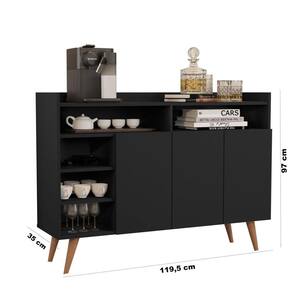 Buffet Aparador Retrô Celta é ideal para sua sala ou cantinho do café! Com design retrô ele irá agregar muito mais charme e requinte ao seu ambiente. Possui 3 portas com dobradiças metálicas, nicho e prateleiras, excelente espaço interno. Um amplo tampo para acomodar bebidas, objetos de decoração, taças etc. Elaborado com chapas em madeira MDP e pés em madeira maciça, esses atributos garantem ao produto maior resistência e durabilidade. Acabamento da Porta: Impressão Acabamento da Prateleira: Impressão Ambiente Principal: Sala de Estar Complexidade da Montagem: Baixa: pode ser montado por uma pessoa sozinha Cor: Preto Cor do Produto: Preto Escala de Brilho: Semi-Brilho Escala de Brilho da Porta: Semi-Brilho Escala de Brilho da Prateleira: Semi-Brilho Itens Inclusos: 1 Buffet, Kit Ferragens e Manual de Montagem Manual de Montagem e Instalação: https://cdn2.madeiramadeira.com.br/atributo/giga-moveis/930163-buffet-celta-giga.pdf Material da Porta: MDP Material da Prateleira: MDP Material dos Pés: Madeira Maciça Material Principal: MDP Necessita Montagem: Sim Origem do Produto: Nacional Pés Reguláveis: Não Peso: 30,45 kg Peso Máximo por Prateleira: 5 kg Possui Adega: Não Possui Bandeja: Não Possui Possui Espelho: Não Possui Nicho: 05 Possui Pés: 04 Possui Portas: 03 Possui Rodízio: Não Possui Vidro: Não Quantidade de Nichos: 05 Recomendações de Uso, Manutenção e Limpeza: Limpe com pano levemente umedecido em água. Nunca utilize produto químico. Sapatas Niveladoras: Não Sistema de Montagem: Parafusos, Cavilhas e Girofix Suporta Até (kg): 50 kg Tipo de Dobradiça/Corrediça da Porta: Metálica Tipo de Madeira Maciça dos Pés: Eucalipto Tipo de Porta: Bater Tipo de Puxador da Porta: Embutido Marca: Giga Móveis