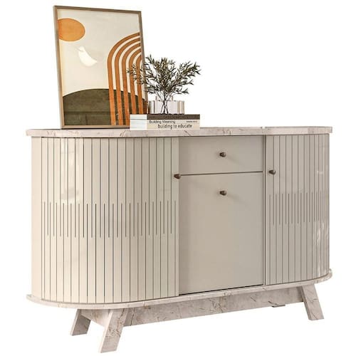 Buffet Aparador 3 Portas E 1 Gaveta 100% Mdp Brianza Calacata/off White