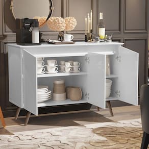 O Buffet Aparador 3 Portas ? Movelove é a peça ideal para quem busca elegância, sofisticação e funcionalidade em um só móvel. Seu design retrô com curvas harmoniosas e pés em madeira maciça traz um toque refinado à decoração, tornando-o perfeito para salas de jantar, estar ou espaços gourmet.