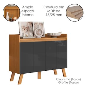 Buffet Aparador 2003207 agregando praticidade e elegância ao seu ambiente. Composto com estrutura em MPD de 15 mm (pés de 25 mm) e acabamento em pintura UV texturizado (Fosco). Conta com 04 portas passantes com dobradiças metálicas, pés estilo retro, tampo e espaço interno amplo para melhor armazenamento. DECORAÇÕES E SALA DE JANTAR NÃO INCLUSO. Este produto será entrega em 01 volume.