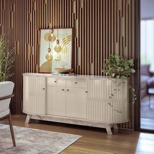 O Buffet Madetec Monaco combina elegância e funcionalidade em um design belíssimo, adaptando-se facilmente a diferentes estilos de decoração. Com 2 portas de giro e 2 portas de correr flexiveis em MDF, 2 gavetas e 3 prateleiras, oferece amplo espaço para armazenar itens de forma organizada. Com acabamento refinado garante um toque sofisticado ao ambiente, sem contar a durabilidade do produto. O Buffet Monaco é a escolha perfeita para quem busca praticidade sem abrir mão de estilo.