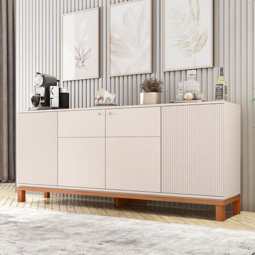 O sofisticado Buffet Jace da Caemmun, é um móvel que une design moderno e funcionalidade. Com portas de giro, laterais com textura microrripada e fecho toque, oferece requinte e praticidade ao seu ambiente. O detalhe do e o puxador ponto nas portas centrais completam o design minimalista e elegante. Possui pés cavalete com base elevada, proporcionando um visual leve e moderno.
