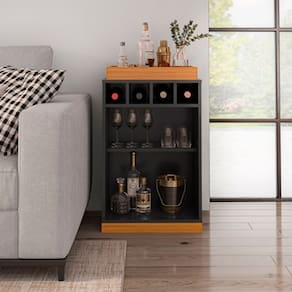 -Fabricado em MDP de 15mm; -Adega para 4 garrafas; -Bandeja em MDF que poderá acomodar taças, jarras e itens decorativos; -Possui 4 Nichos; -Prateleira que garante espaço para organização e praticidade.