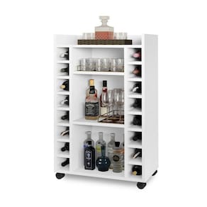 AS IMAGENS SÃO MERAMENTE ILUSTRATIVAS E PODEM SOFRER VARIAÇÕES DE COR E PEQUENOS DETALHES DE ACORDO COM O SEU MONITOR, ILUMINAÇÃO DO AMBIENTE E ATÉ MESMO A SUA PERCEPÇÃO Aparador BÃlgica Adega Bar com RodÃzios Branco