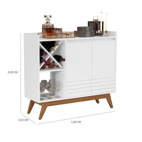 O Buffet Com Adega Iaris irá agregar muito mais charme e requinte à sua casa, com durabilidade e excelente beleza ideal para sua Sala! Desenvolvido em MDP, conta com pintura UV revestimento amadeirado touch com maior resistência e durabilidade, acabamento em alto relevo. Um Móvel moderno para deixar seu ambiente ainda mais aconchegante, ele possui amplo espaço interno com 2 Portas que possui dobradiças, possui 5 Nichos sendo 4 nichos no estilo adega para acomodar suas garrafas. Pés Palito Retrô sendo de madeira proporcionando maior resistência, qualidade e um visual requintado ao móvel. Produto versátil e atual que irá embelezar e satisfazê-lo em qualquer ambiente!!!