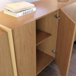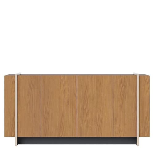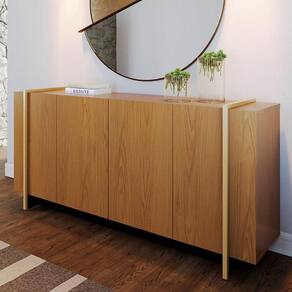 Buffet Aparador Copacabana 4 Portas Freijó/preto/dourado - Colibri Freijó/preto/dourado Buffet Aparador Copacabana 4 Portas - Colibri O Aparador Buffet Copacabana é um produto elegante com detalhes que vão trazer muita sofisticação para a sua sala de estar ou sala de jantar. A combinação com 2 tubos metálicos traz um ar contemporâneo ao móvel. Além de um amplo espaço interno para guardar louças e demais aparelhos de jantar, possui um tampo madeirado para objetos de decoração, taças, bebidas e que também pode servir de suporte para as refeições. Um produto funcional perfeito para pessoas que valorizam design com qualidade. ESPECIFICAÇÕES: - Estrutura em MDP - Pintura UV - 4 Portas - Dobradiças metálicas - Prateleiras internas - Detalhe em tubos metálicos pretos - Tampo espaçoso - Amplo espaço interno - Suporta até 20 Kg