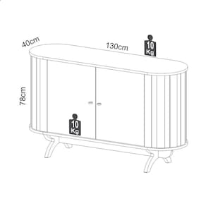 Balcão curvo de 130cm com duas portas cor freijó com pés preto fosco, utilizado em salas de estar e salas de jantar, acompanham todos os acessórios de montagem, combina com o produto tb295 também de nossa fabricação Acabamento da Porta: Pintura UV Acabamento da Prateleira: Pintura UV Acabamento dos Pés: Pintura Altura dos Pés: 18 cm Ambiente Principal: Sala de Jantar Complexidade da Montagem: Média: pode ser montado por mais de uma pessoa e/ou necessite de maior conhecimento para montagem Cor: Freijó/Preto Fosco Cor do Produto: Freijó/Preto Fosco Cor Interna: Freijó/Preto Fosco Escala de Brilho: Fosco Escala de Brilho da Porta: Fosco Escala de Brilho da Prateleira: Fosco Itens Inclusos: 1 Buffet, Kit Ferragens e Manual de Montagem Linha ou Coleção: Nature Manual de Montagem e Instalação: https://cdn2.madeiramadeira.com.br/atributo/dalla-costa/959539-tb289.pdf Material da Porta: MDF Material da Prateleira: MDF Material do Puxador da Porta: Metal Material dos Pés: MDF Material Principal: MDF Necessita Montagem: Sim Origem do Produto: Nacional Pés Reguláveis: Não Peso: 36,5 kg Peso Máximo por Prateleira: 10 kg Possui Adega: Não Possui Espelho: Não Possui Nicho: Não Possui Pés: 04 Possui Portas: 02 Possui Rodízio: Não Recomendações de Uso, Manutenção e Limpeza: Pano seco Sapatas Niveladoras: Não Sistema de Montagem: Minifix Suporta Até (kg): 10 kg Tamanho: Tipo de Dobradiça/Corrediça da Porta: Metálica Tipo de Porta: Bater Tipo de Puxador da Porta: Externo