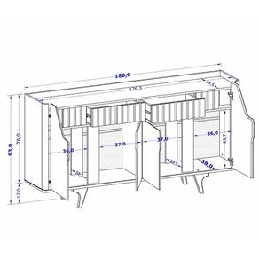 O Buffet Aparador Danúbio - Bechara Móveis possui design moderno que mescla suas curvas nas portas e laterais com detalhe em ripado real. Ele conta com Base em MDF de 25mm chanfrada em ângulo, portas em MDF chanfrada com design único que proporciona ao produto beleza charme e requinte como nenhum outro entrega! Cantos curvos feitos em MDF, amplo tampo e prateleira ajustável. Gavetas com corrediças telescópicas, sendo as frentes em ripado real. Pés em madeira maciça que garantem ainda mais resistência e qualidade ao produto.Dimensões do Produto Montado:Altura: 93cmLargura: 180cmComprimento: 38cmObservações:– 4 Pés em Madeira maciça (Pinus)– Corrediças Telescópicas– Dobradiças Metálicas com sistema Soft close– Suporta até 49kg distribuídos– Detalhes ripadosMarca: Bechara MóveisModelo: DanúbioReferência: 2076746WATENÇÃO: Não nos responsabilizamos pela montagem deste produto. Aconselhamos a contratação de um profissional.