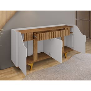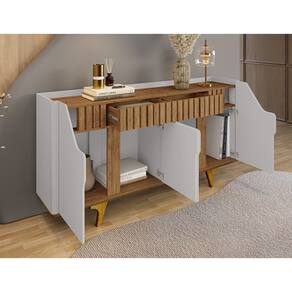 O Buffet Aparador Danúbio - Bechara Móveis possui design moderno que mescla suas curvas nas portas e laterais com detalhe em ripado real. Ele conta com Base em MDF de 25mm chanfrada em ângulo, portas em MDF chanfrada com design único que proporciona ao produto beleza charme e requinte como nenhum outro entrega! Cantos curvos feitos em MDF, amplo tampo e prateleira ajustável. Gavetas com corrediças telescópicas, sendo as frentes em ripado real. Pés em madeira maciça que garantem ainda mais resistência e qualidade ao produto.Dimensões do Produto Montado:Altura: 93cmLargura: 180cmComprimento: 38cmObservações:– 4 Pés em Madeira maciça (Pinus)– Corrediças Telescópicas– Dobradiças Metálicas com sistema Soft close– Suporta até 49kg distribuídos– Detalhes ripadosMarca: Bechara MóveisModelo: DanúbioReferência: 2076640WATENÇÃO: Não nos responsabilizamos pela montagem deste produto. Aconselhamos a contratação de um profissional.