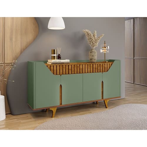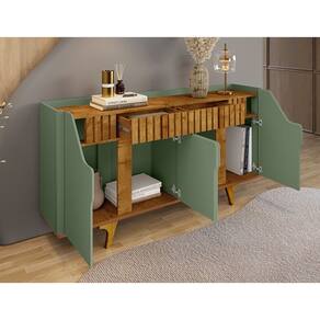 O Buffet Aparador Danúbio - Bechara Móveis possui design moderno que mescla suas curvas nas portas e laterais com detalhe em ripado real. Ele conta com Base em MDF de 25mm chanfrada em ângulo, portas em MDF chanfrada com design único que proporciona ao produto beleza charme e requinte como nenhum outro entrega! Cantos curvos feitos em MDF, amplo tampo e prateleira ajustável. Gavetas com corrediças telescópicas, sendo as frentes em ripado real. Pés em madeira maciça que garantem ainda mais resistência e qualidade ao produto.Dimensões do Produto Montado:Altura: 93cmLargura: 180cmComprimento: 38cmObservações:– 4 Pés em Madeira maciça (Pinus)– Corrediças Telescópicas– Dobradiças Metálicas com sistema Soft close– Suporta até 49kg distribuídos– Detalhes ripadosMarca: Bechara MóveisModelo: DanúbioReferência: 2076696WATENÇÃO: Não nos responsabilizamos pela montagem deste produto. Aconselhamos a contratação de um profissional.