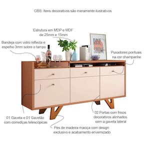 Material da Estrutura: MDP de 25mm, MDF 15mm e Madeira Maciça.