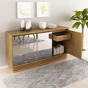 Buffet Aparador Balcão Sala de Jantar com Espelho nas Portas BB2609 MDP - Gran Beloestá um charme, ideal para compor o ambiente e deixar com um toque moderno. Esse modelo exclusivo pode ser utilizado como Aparador, Buffet, Bar e Rack. Foi desenvolvido para se adequar a qualquer ambiente. Aproveite agora e adquira já o seu, você vai se surpreender com a qualidade desse produto!