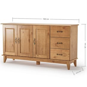 Buffet Aparador Madeira Maciça 3 Portas 3 Gavetas 156 cm Bella Casa Chick