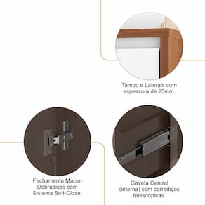 O Buffet Madrid é a escolha perfeita para adicionar charme e requinte à sua sala. Com um design moderno, oferece amplo espaço interno para acomodar diversos objetos. Feito com tampo e laterais em MDP de 25mm, ele garante durabilidade. As portas em MDF de 15mm são equipadas com puxadores em cava e curvas metálicas de 35mm com sistema soft close, proporcionando um fechamento suave e silencioso. Internamente, o buffet conta com interna com prateleiras e uma gaveta com corrediças telescópicas, oferecendo organização prática. Os pés possuem sapatas protetoras que evitam riscos no piso, garantindo a integridade do ambiente.