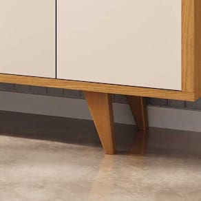 - Pés de madeira maciça levemente angulados com acabamento envernizado