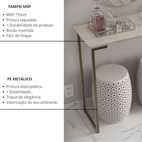 Especificações: - Tampo MDF 15mm - Pintura Laca - Pé metálico com pintura eletrostática - Alta durabilidade
