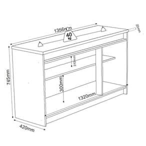 ESPECIFICAÇÕES: Estrutura em MDF e MDP Pintura UV 3 Portas Dobradiças metálicas Interna com prateleira Tampo de 25mm 6 Sapatas plásticas Amplo espaço interno