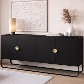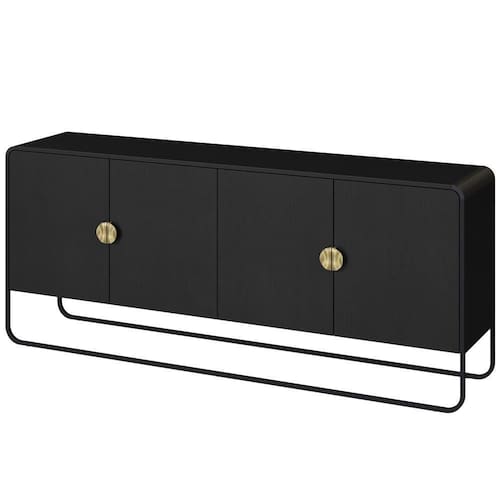 Buffet Aparador 28075, une design orgânico e contemporâneo com funcionalidade para o dia a dia. Estrutura em MDP 15 mm com cantoneiras em MDF e acabamento em pintura BP. Possui 4 portas com dobradiças com amortecimento, puxadores em poliestireno (plástico), pés em metal, cantos arredondados estilo orgânico e sapatas plásticas que protegem o piso contra riscos. Produto entregue em 01 volume.