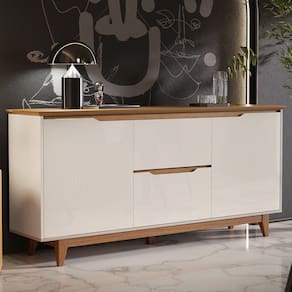 Com linhas limpas e sofisticadas, esse balcão buffet é perfeito para aqueles que buscam adicionar um toque contemporâneo ao seu espaço de jantar, principalmente se prefere um design moderno e minimalista, que se encaixa perfeitamente em qualquer estilo de decoração, enquanto proporciona um visual sofisticado à sala de jantar. Além disso, a funcionalidade se revela nas duas portas e duas gavetas, fornecendo amplo espaço de armazenamento para todos os seus utensílios de mesa posta, jogos de jantar e até mesmo suas preciosas taças e cristais. Ah, já o diferencial está na montagem flex das vistas das portas e gavetas, ou seja, você poderá optar por ter os detalhes na tonalidade freijó. Demais, não é mesmo?!