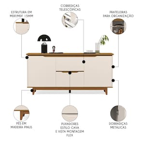 Com o Buffet Aparador para Sala de Jantar 163cm Flow Off White/Freijó, da EJ Móveis, o design moderno encontra funcionalidade elegante, e vai transformar sua sala de jantar em um verdadeiro santuário gastronômico.