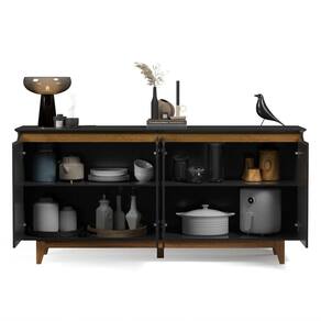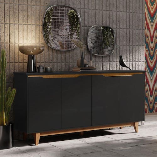 Este elegante e funcional móvel de armazenamento é a adição perfeita para qualquer sala de jantar ou cozinha. Com quatro portas espaçosas, você terá muito espaço para armazenar louças, utensílios de cozinha e outros itens essenciais da casa. O design contemporâneo do Flow se integra perfeitamente em qualquer decoração de interiores, e as portas acesso ao conteúdo armazenado. O buffet é feito com materiais de alta qualidade, o que garante a sua durabilidade e longevidade. Este buffet versátil pode ser utilizado para guardar itens de cozinha, como pratos, talheres e copos, ou como um espaço de exibição para as suas peças de decoração favoritas. A escolha é sua! Acabamento da Porta: Laca Acabamento da Prateleira: PU Acabamento dos Pés: Verniz Altura dos Pés: 15 Ambiente Principal: Sala de Jantar Complexidade da Montagem: Alta: deve ser montado por um montador especializado Cor: Preto Cor do Produto: Preto Cor Flex: Sim Cor Interna: Preto Escala de Brilho: Semi-Fosco Escala de Brilho da Porta: Brilhante Escala de Brilho da Prateleira: Brilhante Itens Inclusos: 1 Buffet, Kit Ferragens e Manual de Montagem Linha ou Coleção: Flow Manual de Montagem e Instalação: https://cdn2.madeiramadeira.com.br/atributo/ej-moveis/1287758-manual-montagem-buffet-4-portas-flow-ej-moveis-atualizado-2.pdf Material da Porta: MDF Material da Prateleira: MDP Material dos Pés: Madeira Maciça Material Principal: MDF/MDP Montagem Flex: Nâo Necessita Montagem: Sim Origem do Produto: Nacional Pés Reguláveis: Não Peso: 45 Peso Máximo por Prateleira: 5 Possui Adega: Não Possui Espelho: Não Possui Nicho: Não Possui Pés: 05 Possui Portas: 04 Possui Rodízio: Não Recomendações de Uso, Manutenção e Limpeza: Recomenda-se limpar o produto com flanela ou pano macio seco, não utilizar produtos abrasivos, desengordurantes, álcool ou solvente. Mantê-lo em lugar livre de umidade e/ou exposição direta ao sol. Sapatas Niveladoras: Não Sistema de Montagem: Parafusos, Minifix, Pregos e cavilhas. Suporta Até (kg): 35 Tipo de Dobradiça/Corrediça da Porta: Metálica Tipo de Madeira Maciça dos Pés: Pinus Tipo de Porta: Bater Tipo de Puxador da Porta: Embutido