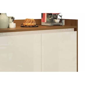 Observações: - Produzido em MDP; - 2 portas com dobradiças metálicas; - Pés palito, estilo retrô, em madeira pinus; - Peso suportado por prateleira: até 7kg; - Pintura Ultravioleta com acabamento brilho na cor off white; - Pintura Ultravioleta com acabamento semi brilho na cor freijó.
