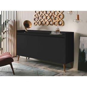 Buffet Aparador Retrô Clássico 4 Portas Preto - Moveisaqui