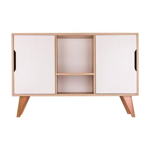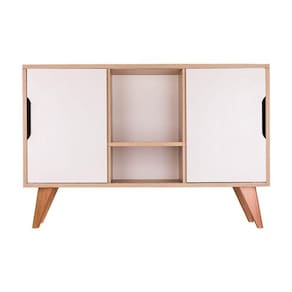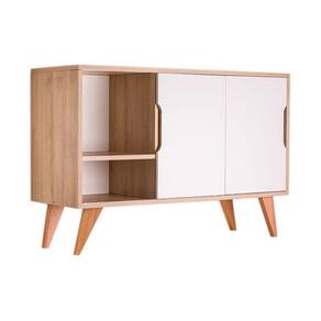 Buffet Aparador Retrô com 2 Portas Murano Carvalho e Branco