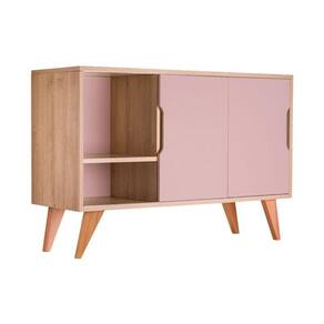Buffet Aparador Retrô com 2 Portas Murano Carvalho e Rosa Claro