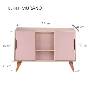 Buffet / Aparador / Balcão Retrô Modelo Murano cor Carvalho Treviso com 2 portas Rosa Claro, o móvel perfeito para deixar seu ambiente com estilo e organizado. Possui dois compartimentos internos com 2 portas laterais e uma prateleira central visível para colocar objetos de decoração. Móvel apoiado em quatro lindos pés torneados em madeira maciça. O móvel apresenta um estilo clean sem puxadores, apenas um recorte nas portas para abrir e fechar. Montagem: Vai desmontado. Cor do Móvel: Madeira Clara (Carvalho Treviso) e portas Rosa Claro. Cor dos pés: Amadeirado de cor clara. Medidas: Largura Total 115cm x Altura Total 77cm x Profundidade Total 40cm, portas A 53cm x L 37cm, pés A 20cm. Material: MDP com espessura 1,5cm . Limpeza: Recomenda-se a limpeza com pano seco ou levemente umedecido. Importante: Este anúncio inclui somente o produto conforme descrição acima. Todos os elementos de decoração das fotos não acompanham o mesmo.